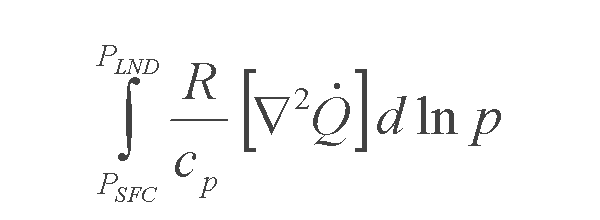 | According to Pettersen development equation, the term associated to the release of diabatic heat can be expresed as the integral presented below between the surface and the level of non-divergence (LND). Notice that this term is not dependent on stability as it is the term associated with thermal advections!. |