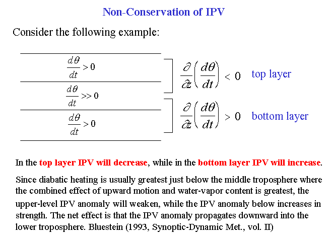 | According to Ertel Potential Vorticity Theorem, IPV can be created/destroyed by the effects of friction and diabatic heating or cooling: |