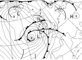 | Good. Now move on to the next page and forecast the central pressure of the low! |